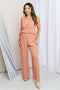 This jumpsuit is made from a soft and comfortable fabric that drapes beautifully on the body, ensuring a flattering and effortless look. The boat neck design adds a touch of elegance to the jumpsuit, while the solid color makes it versatile and easy to style. The jumpsuit features a cinched waist that creates a flattering silhouette, and the wide-leg design adds a trendy and modern touch.